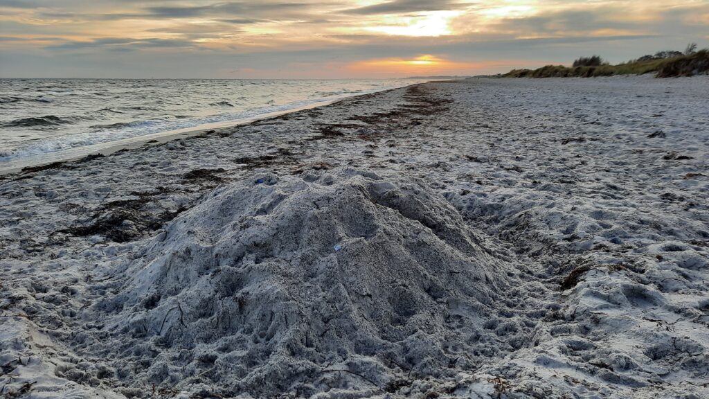 Bei einem Foto Motiv ging ich hinunter in die Hocke. Nachdem ich das Foto gemacht hatte, wollte ich mich wieder aufrichten, aber es klappte nicht, weil mir die Kraft fehlte. Ich kippte nach vorn um und kickte direkt mit dem Kopf nach Vogel Strauß Art gegen die Düne. Einige Strandbesucher gingen gerade direkt am Wasser auf meiner Höhe vorbei und schauten ungläubig. Vielleicht dachten sie, ich wäre betrunken oder so. Ich klärte sie nicht auf und ließ sie glauben, was sie glauben wollten. Das war wahrscheinlich die bessere Variante als ihnen entgegenzurufen: “ Kein Problem, das liegt nur an meinem Corona!“