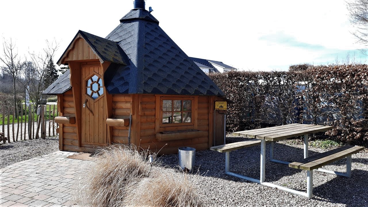 Gleich hinter der Auffahrt zum Wohnmobilpark Walkyrien befindet sich die sogenannte „Grill Kota“. Diese bietet Platz für bis zu 15 Personen und gegen Aufpreis kann man dort einen gemütlichen und vom Wetter unabhängigen Grillabend verbringen. In der Buchung enthalten sind für 3 Stunden Strom, Grillkohle und Anzünder, Feuerholz und die Nachreinigung. Eine tolle Idee für Grillfans, die auch bei Regen oder kalten Tagen auf dem Wohnmobilstellplatz einen schönen Grillabend verbringen können.