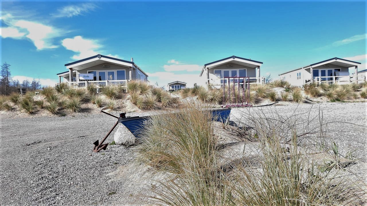 Direkt neben den Wohnmobilstellplätzen befinden sich die Ferienhäuser. Von denen gibt es insgesamt 70 Stück und sind namentlich kategorisiert in Admiral, Kapitän, Offizier, Bootsmann, Matrose und Romantik. Die moderne Ferienhausanlage wurde direkt auf dem Feld errichtet und ist einige Hundert Meter von der Ostsee und dem Strand entfernt. Doch wenn man die Wege in der Anlage entlangläuft oder als Urlauber vor die Tür seines Ferienhauses tritt, merkt man davon nichts. Durch viel Aufwand und Liebe zum Detail wurde in der Ferienhausanlage ein Ambiente geschaffen, dass das Gefühl vermittelt, die Häuser wurden direkt am Strand stehen.