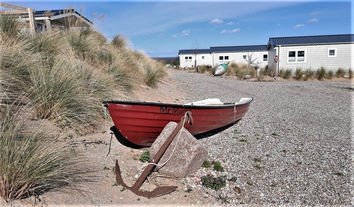 Vor den Häusern und auf dem ganzen Gelände sieht man originalgetreue Sanddünen, Bojen und kleine Boote. Zunächst dachte ich wer denn soweit von der Ostsee entfernt sein Boot da heraufziehen würde bis mir klar wurde, dass diese dekorativen Zwecken dienen. Wirklich sehr detailverliebt und schön gemacht. Die Häuser verfügen alle über eine Terrasse inklusive Strandkorb. Also, auch wenn man einige Hundert Meter von Ostsee entfernt ist, wird einem ein Maximum an Strandfeeling vermittelt. Auf dem Gelände gibt es für Kinder und Jugendliche einen großen Spielplatz, einen Bolzplatz, ein Beachvolleyballfeld, mehrere Tischtennisplatten, ein Basketballfeld und und und. An Spiel- und Sportmöglichkeiten mangelt es wahrlich nicht.