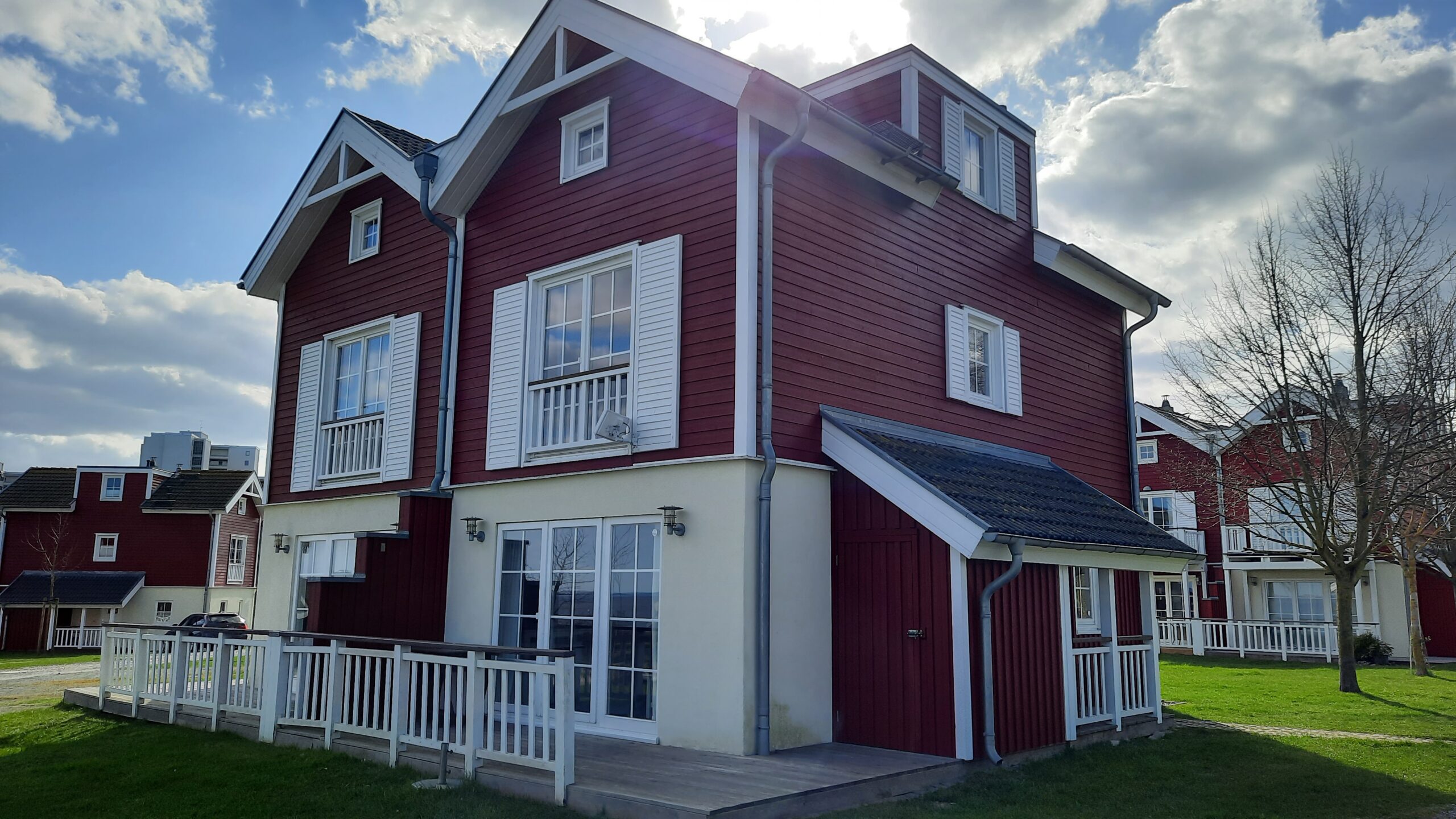 Die Feriendomizile liegen in der skandinavischen Holzhaussiedlung „Strandpark“ in Sierksdorf. Die Anlage liegt direkt zwischen dem Vergnügungspark Hansapark und der Ostsee. Die exklusive Ausstattung sorgt für einen angenehmen und erholsamen Aufenthalt. Die farbenfrohen Häuser und Ferienwohnungen aus dem Land von Pipi Langstrumpf verbreiten gute Laune und gehobene Urlaubsstimmung. Lassen sie sich davon anstecken und haben eine schöne Zeit bei uns in Sierksdorf.
